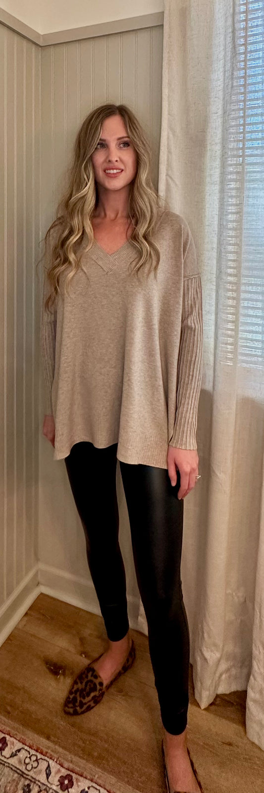 Ribbed Sleeve V-Neck Sweater - 3 Colors