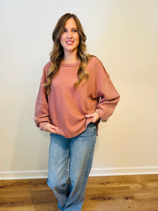Brown Acid Washed Ribbed Pullover