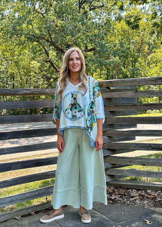 MINERAL WASHED TERRY KNIT PALAZZO PANTS