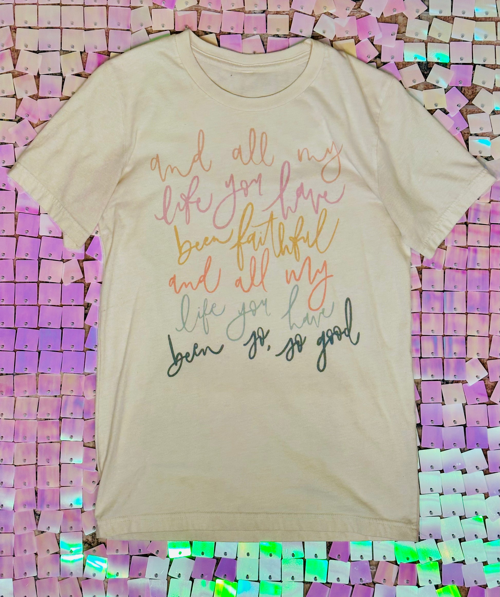 Experience the ultimate comfort with our Goodness of God Graphic Tee. Made with a soft and comfortable fabric, this tee is perfect for all-day wear. Whether you're lounging at home or out running errands, stay comfortable and stylish with our Goodness of God tee.